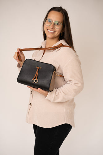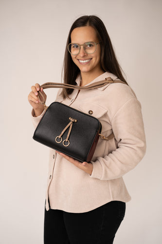 • Zwart tasje met bruin/beige